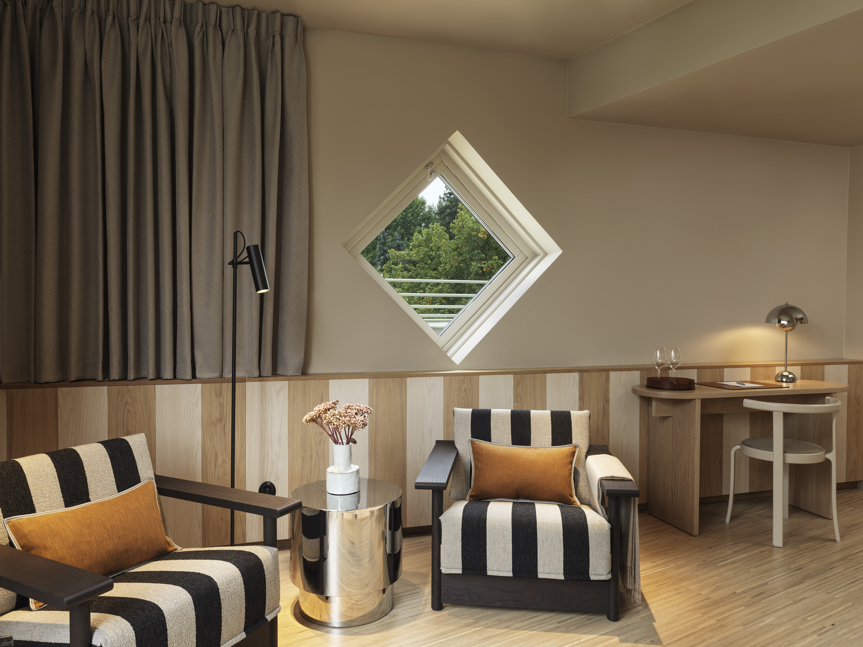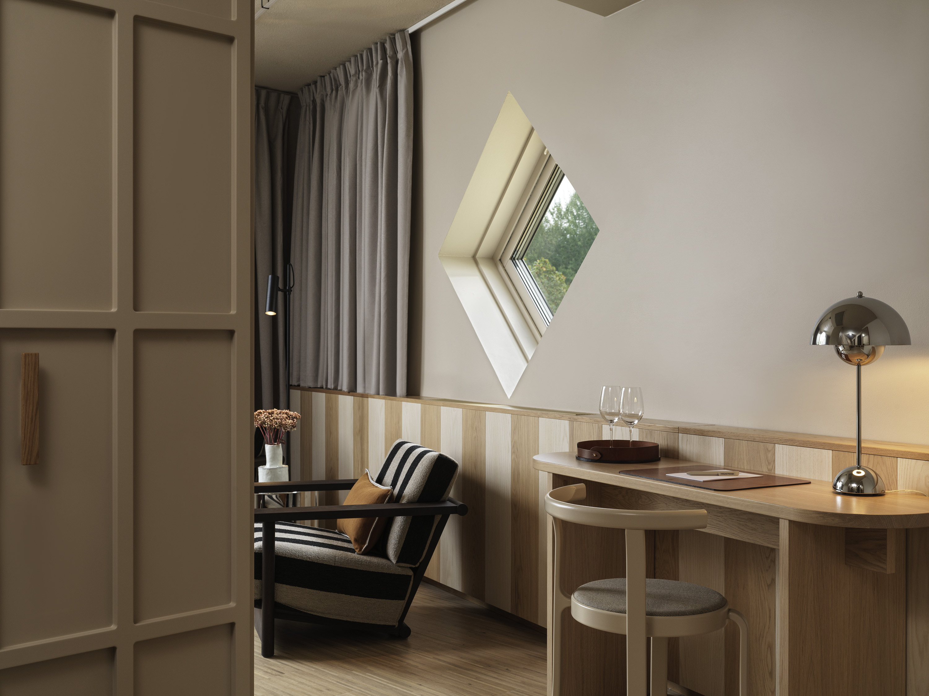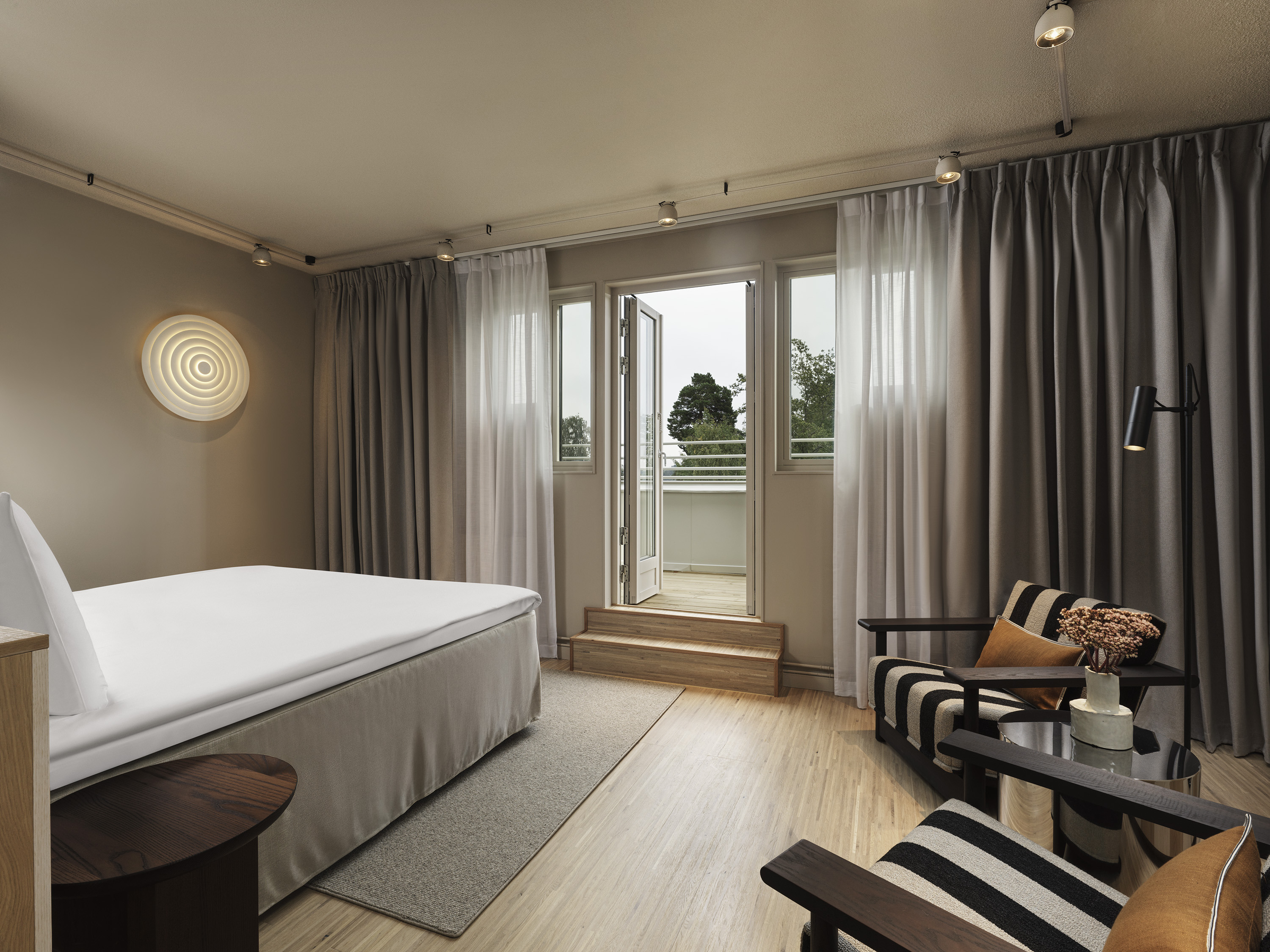 Deluxerummen med balkong suddar ut gränsen mellan inne och ute. Den privata uteplatsen vetter mot Brunnsvikens glittrande vatten och ger utrymme för stilla stunder i frisk luft – oavsett tid på dagen.Rummen är formgivna av Wingårdhs med mjuka toner, naturmaterial och en smart känsla för rymd – med en king size-säng från DUX, sittplats, skrivbord och badrum med walk-in-dusch.