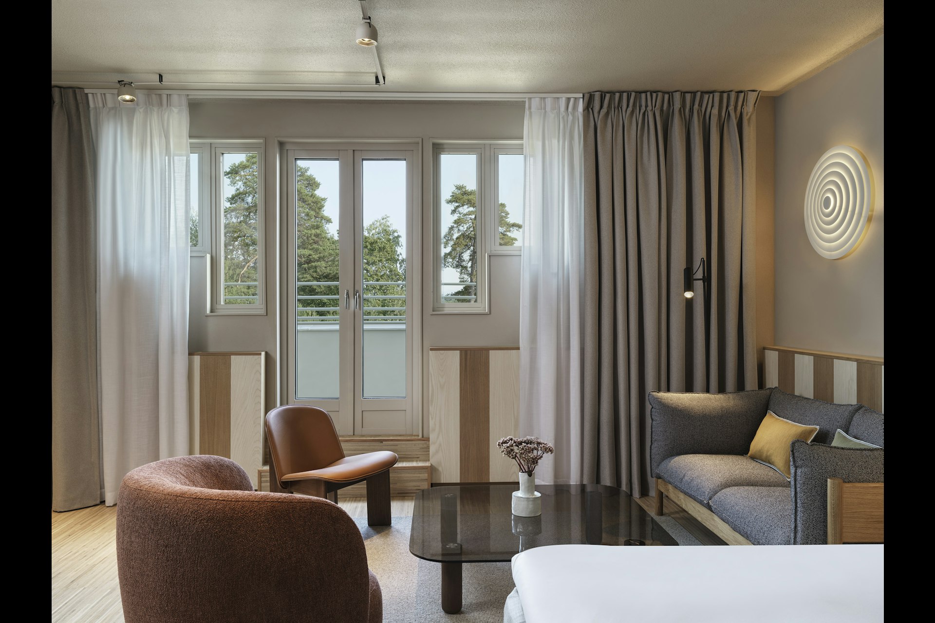 Junior-sviterna på Hagastrand är skapade för dig som söker lite mer av allt – mer utrymme, mer ljus och mer tid att bara vara. Med utsikt över hotellets grönskande trädgård, en elegant lounge-del och Wingårdhs karaktäristiska formspråk bjuder rummet in till både avkoppling och närvaro. Sängen är en generös king size från DUX. Inredningen bär på naturliga material och sobra nyanser, med badrum i tidlös sten, walk-in-dusch, skrivbord och generösa ytor att röra sig i – eller slå sig ner i lugn och ro.
