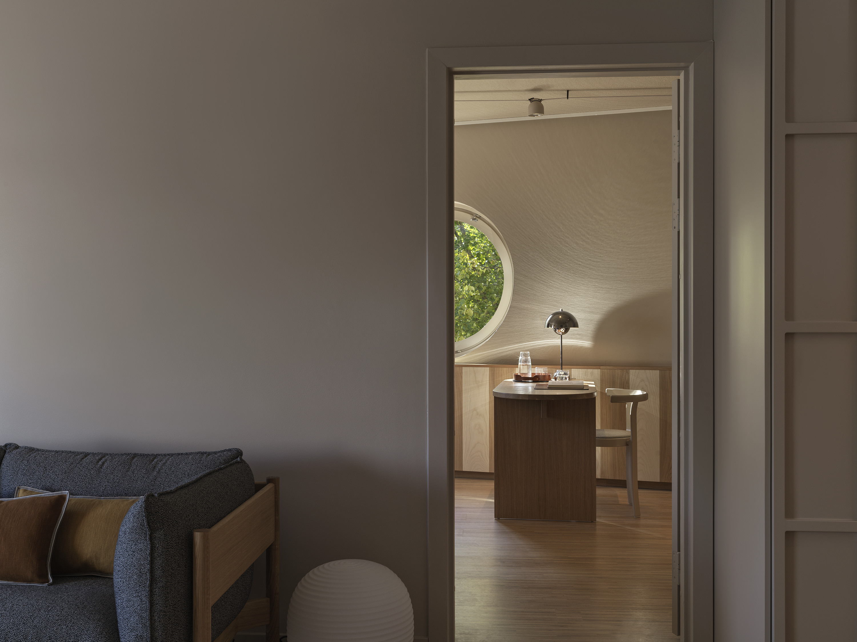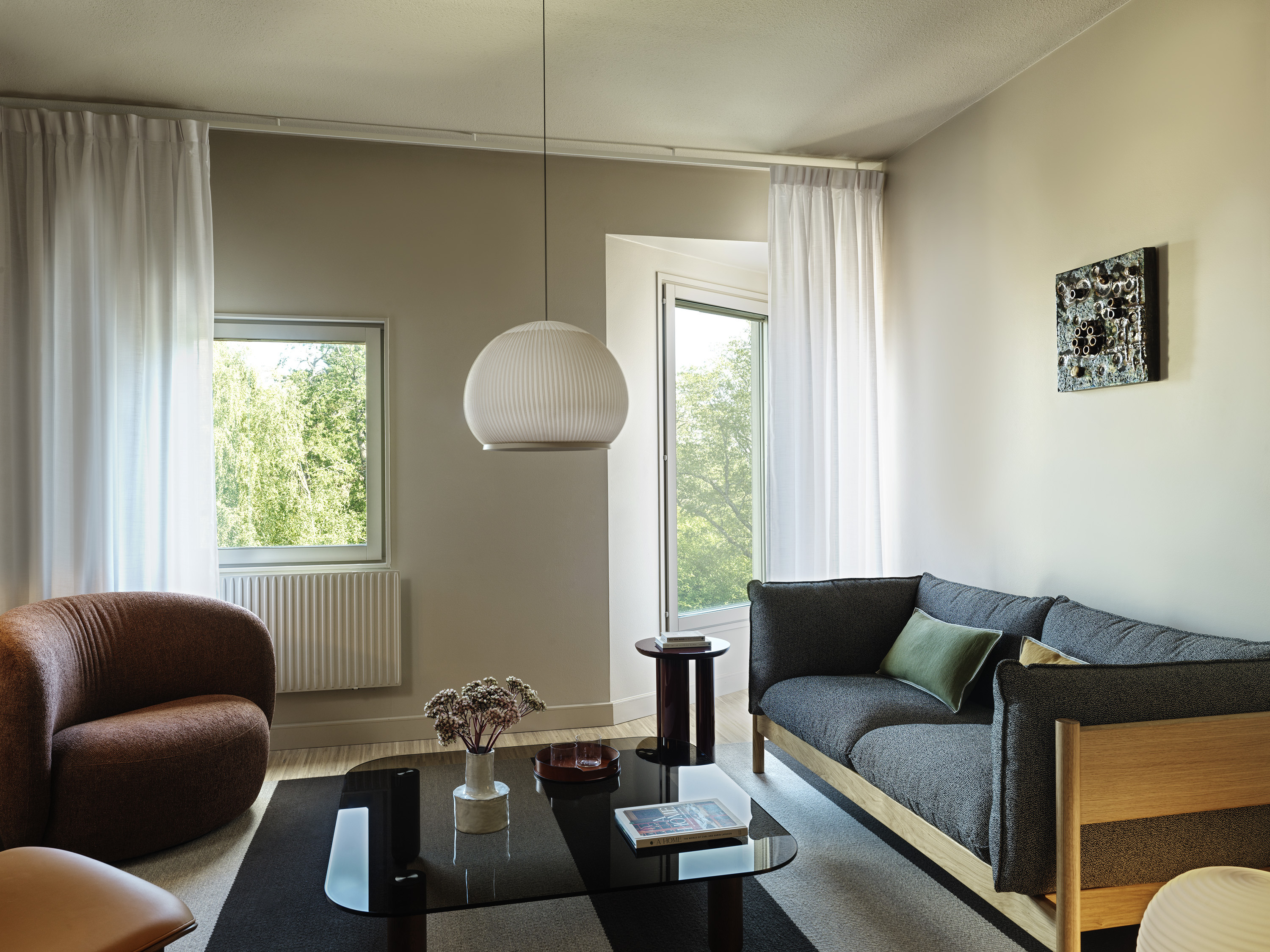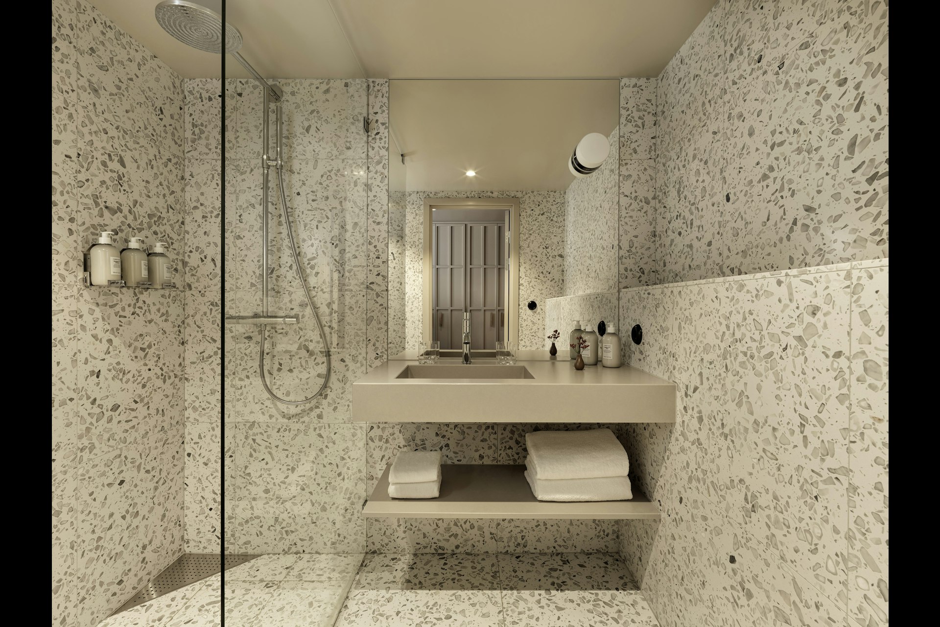 Sviterna på Hagastrand är designade för närvaro och rymd. Med utsikt över hotellets grönskande trädgård och separata sovrum och vardagsrum skapas en miljö där både arbetsro, återhämtning och sociala stunder får ta plats. Interiören är signerad Wingårdhs och präglas av varma naturmaterial, elegant belysning och genomtänkta detaljer. Här finns generös king size-säng från DUX, loungemöbler, skrivbord och badrum i sten med walk-in-dusch.