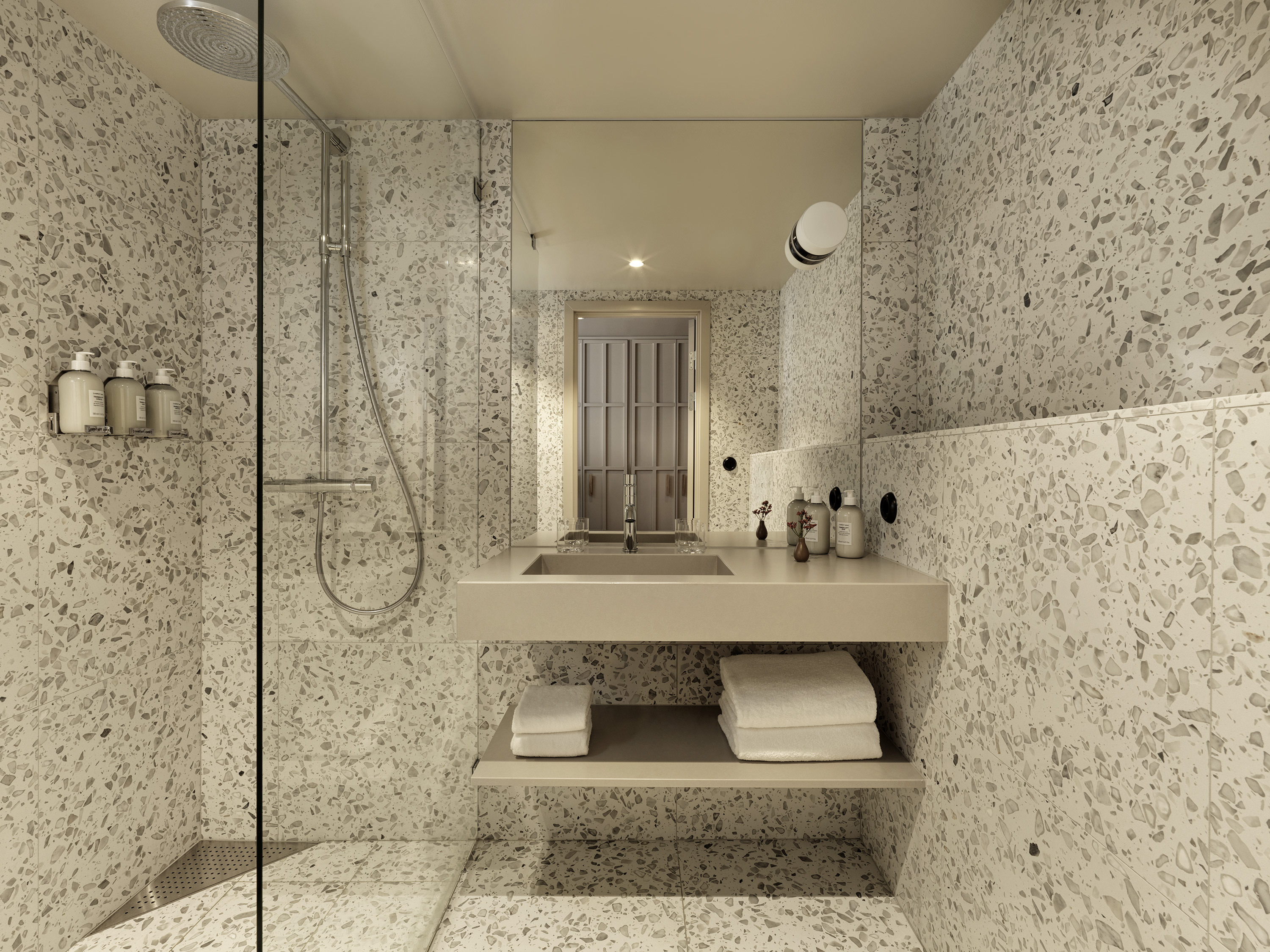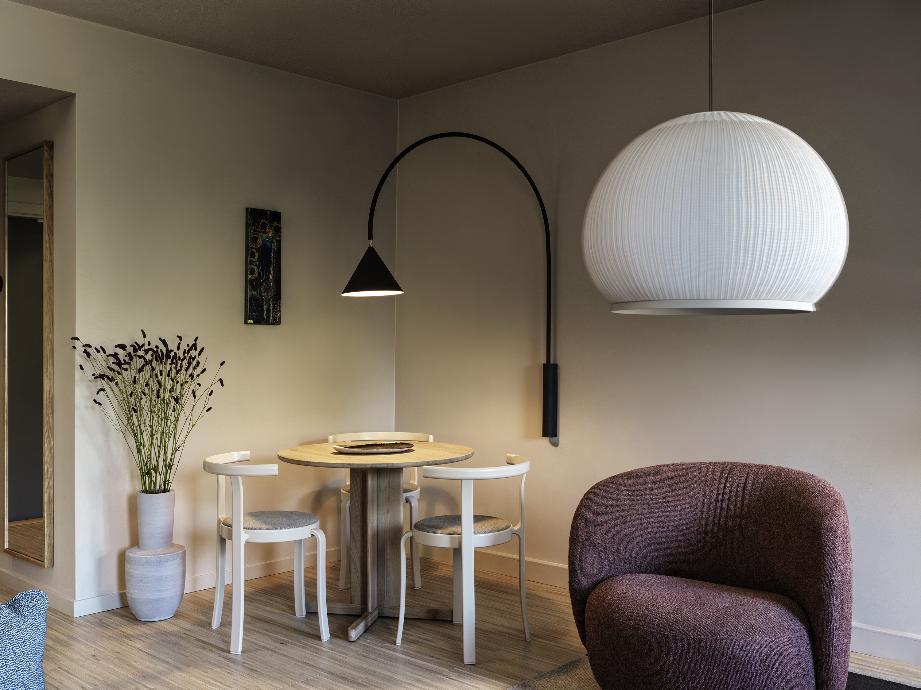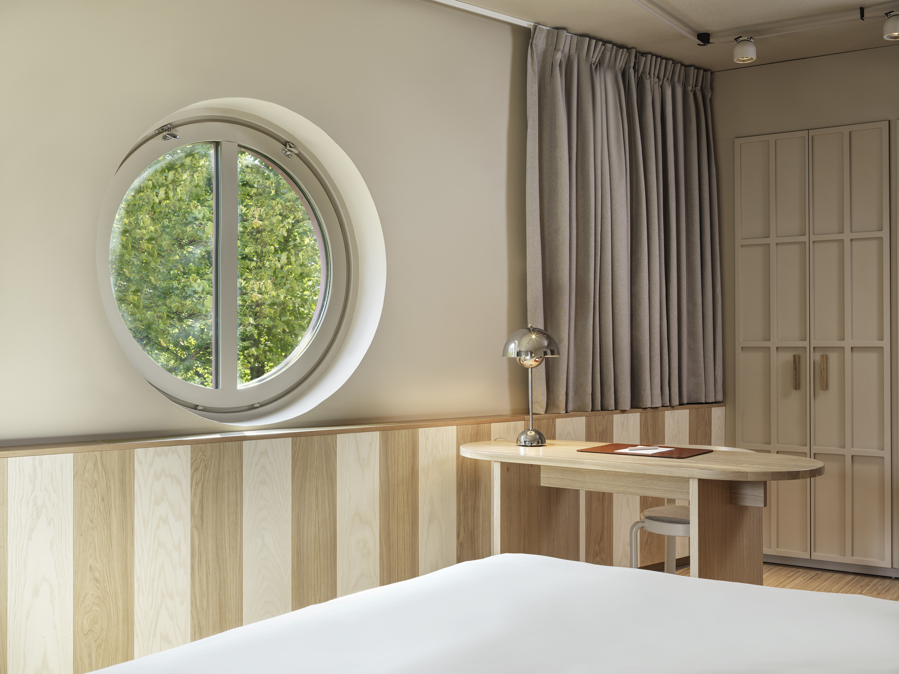 Sviterna på Hagastrand är designade för närvaro och rymd. Med utsikt över hotellets grönskande trädgård och separata sovrum och vardagsrum skapas en miljö där både arbetsro, återhämtning och sociala stunder får ta plats. Interiören är signerad Wingårdhs och präglas av varma naturmaterial, elegant belysning och genomtänkta detaljer. Här finns generös king size-säng från DUX, loungemöbler, skrivbord och badrum i sten med walk-in-dusch.
