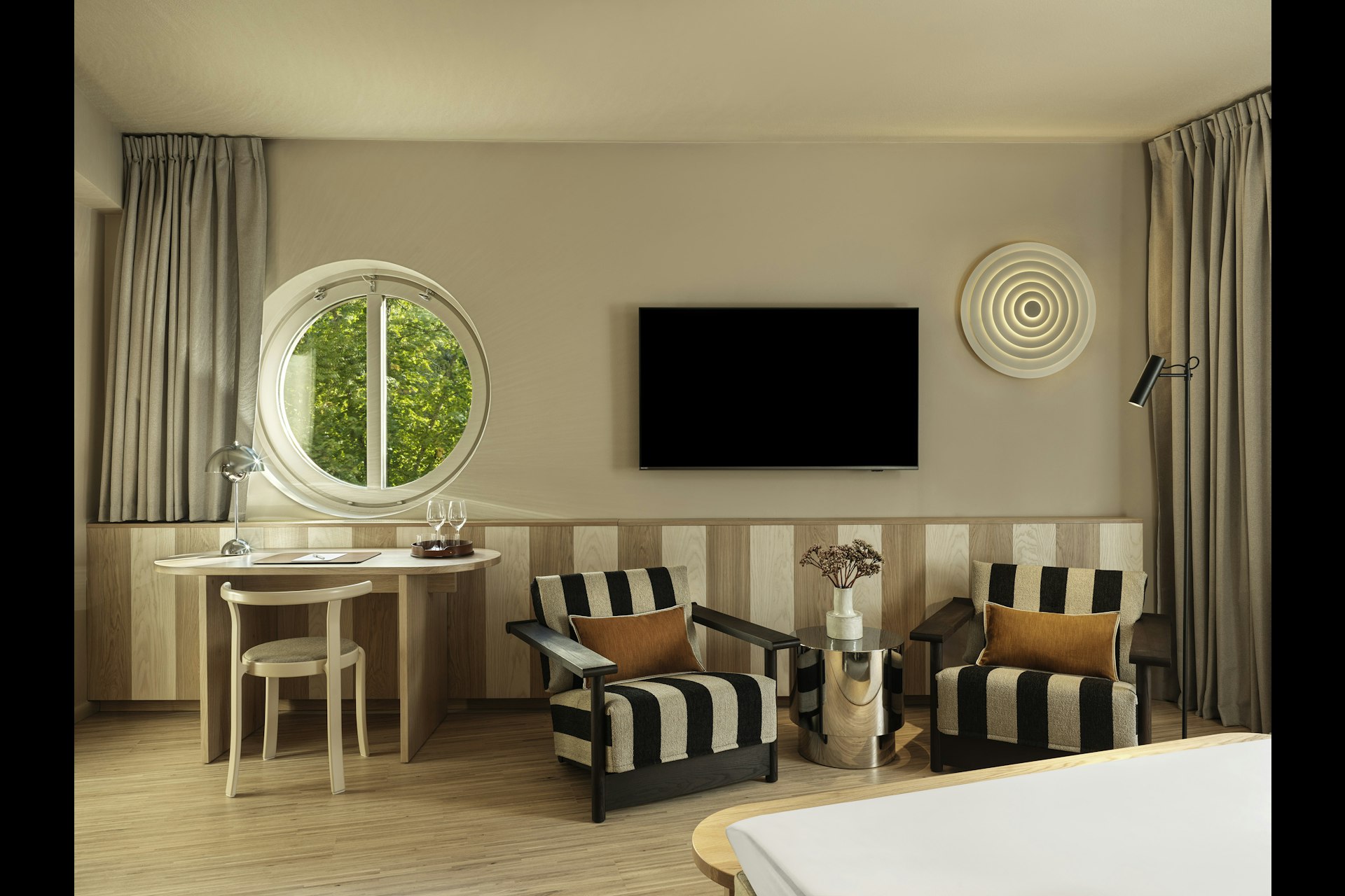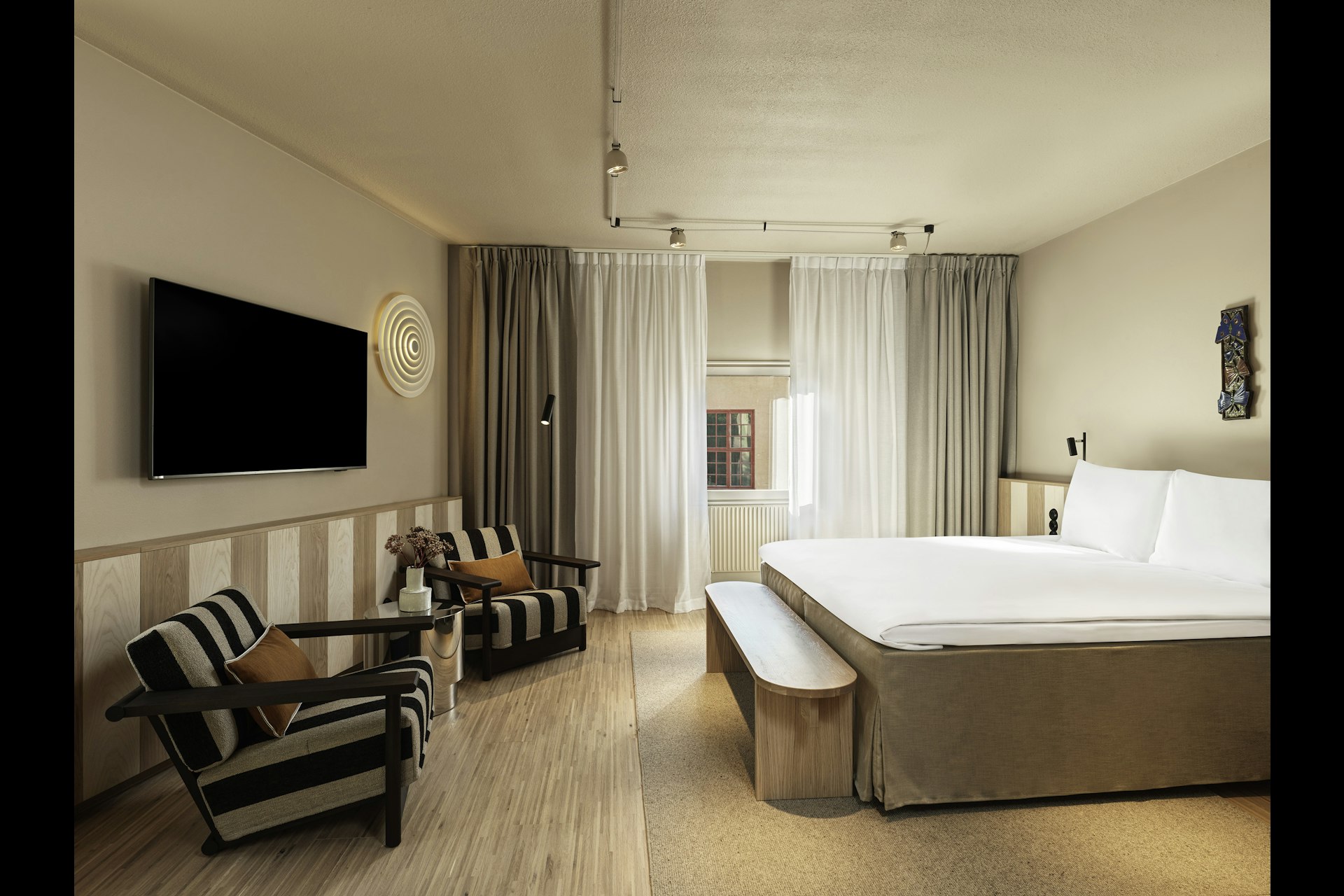 Superiorrummen på Hagastrand erbjuder extra utrymme för både avkoppling och fokus. Med Wingårdhs harmoniska design, lugna kulörer och ett bekvämt loungeområde är detta en plats för välbefinnande och inspiration. Rummen har utsikt mot trädgården, är utrustade med en generös king size-säng från DUX, skrivbord och badrum med walk-in-dusch – allt omsorgsfullt utformat för din komfort.